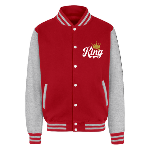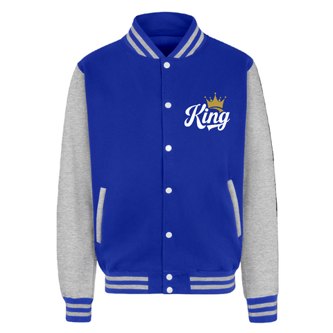 Lead with confidence in the Divine Dominion Heavyweight Varsity Jacket, a bold upgrade to the classic letterman. Crafted from a premium ringspun cotton-poly blend, it delivers warmth, structure, and lasting durability. Featuring a crowned King...