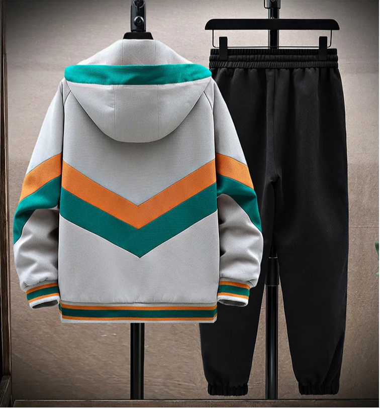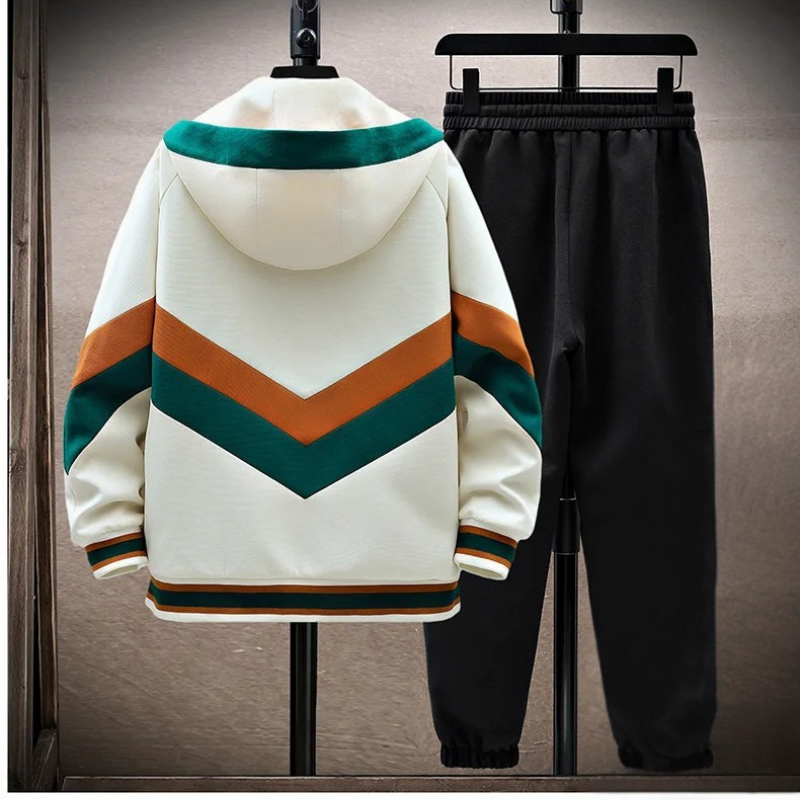 Redefine street-luxe style in the Dravven Core Jogger Set — where earth-tone patchwork meets modern edge. This two-piece features a striking zigzag front design that aligns perfectly with its contrast-stitch sleeves, finished with ribbed cuffs and hem for structure. The hoodie’s adjustable drawstring hood and kangaroo pocket bring laid-back ease, while the joggers’ elastic waist, logo patch, and roomy pockets deliver all-day function. Curated from premium polyester with standard thickness, it’s warm enough for autumn chills yet versatile for layering through winter. Pair with sneakers for a casual vibe, or boots and accessories to elevate your aura.