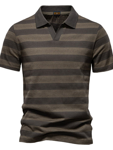 Men's Classic Short Sleeve Contrast Color Striped Cotton Polo