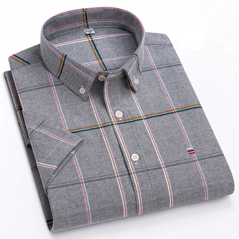 Men’s Prestige Stripe Plaid Oxford Short Sleeve Button-Down Shirt