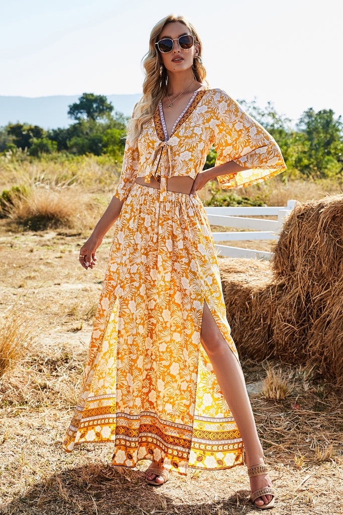 Say hello to the PetalVista Floral Viscose Duo, your go-to set for effortless elegance and vacation vibes. The soft half-sleeve top and coordinating slit skirt feature an enchanting floral print on breathable, premium 100% viscose. Designed with a comfy elastic waistband and dual side slits, this duo flows with your every step—perfect for warm days exploring or casual sunset dinners. Available in sherbet, misty blue, navy, and carnation pink, sized S–L. Machine washable for stress-free care and endless adventure wear.