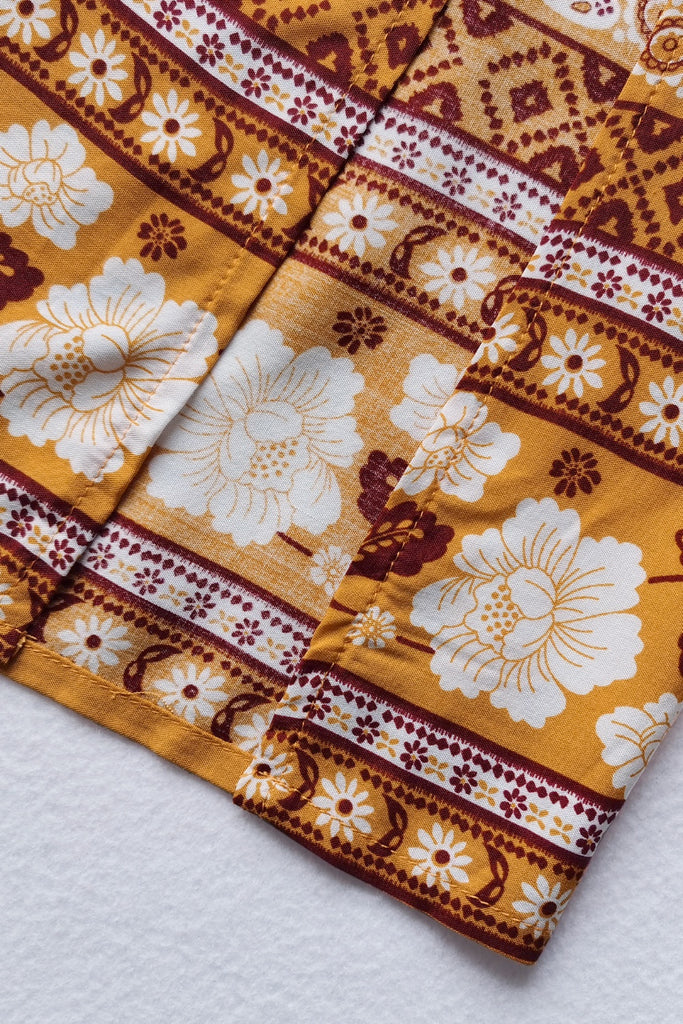 PetalVista sherbet set Close-up of top front tie detailElastic waistband close-up on PetalVista sherbet skirt for flexible comfortable fit