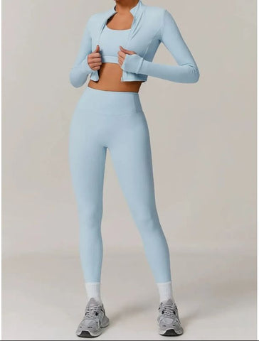 Women's Crop Top Outerwear and Leggings 3-Piece Active Set