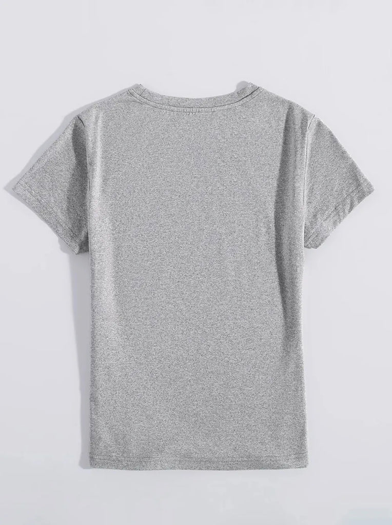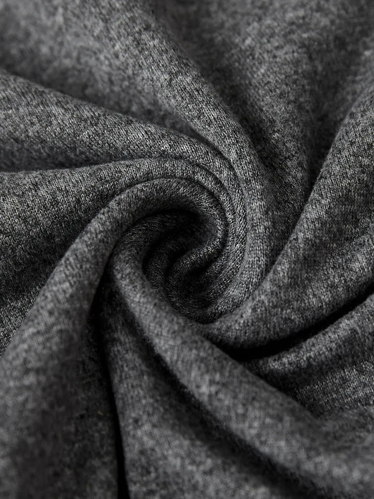 Close up view of the CaliVista Round Neck Tee's quality fabric in dark gray.