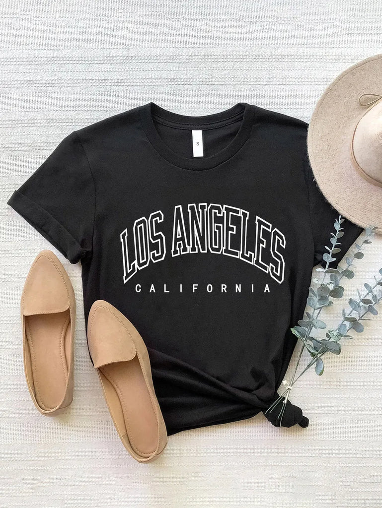 Experience the essence of Los Angeles with the CaliVista Tee. Crafted from a slightly stretchy, breathable fabric, this round-neck t-shirt features the iconic "LOS ANGELES CALIFORNIA" logo, embodying the city's vibrant spirit. Its versatile design pairs seamlessly with jeans, shorts, or skirts, making it a staple for any wardrobe. Available in a palette of 8 stylish colors and sizes S–2XL, the CaliVista Tee offers both comfort and a touch of LA charm.