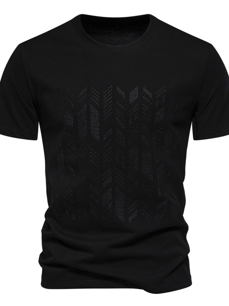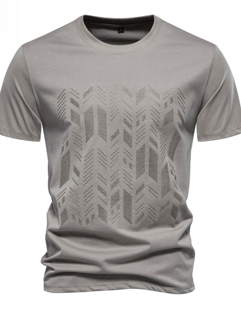 Elevate your everyday look with the GeoLuxe Modern Embroidered Round Neck Tee, a statement of refined simplicity and comfort. This premium men’s t-shirt blends 73.7% cotton and 26.3% polyester to deliver a luxuriously soft touch, breathability, and exceptional durability. Its geometric embroidery adds a modern, artistic edge to a classic round-neck silhouette, giving you an effortlessly polished look.