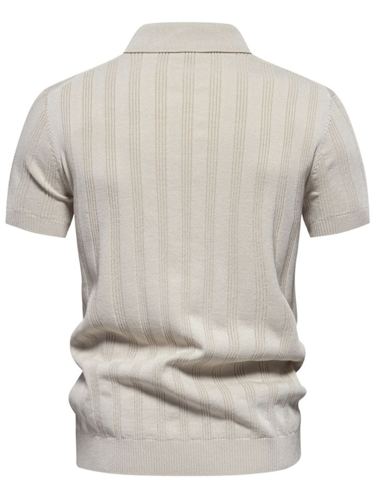 Refine your casual wardrobe with the Onyx Luxe Knit Polo, a versatile staple designed for effortless sophistication. Crafted from a premium viscose-polyester blend, this short sleeve knit polo offers a silky, breathable feel with wrinkle resistance and durability for seasonless wear. The classic collar, subtle embroidered detail, and two-button placket deliver a minimalist, elevated look that transitions easily from day to night. Its moisture-wicking, absorbent, and quick-drying properties keep you cool and comfortable, while the lightweight, stretchable fabric moves with you for a relaxed yet tailored fit. Available in four refined hues — Beige, Gray, Black, and Mocha — in sizes S–2XL, this polo pairs perfectly with jeans, chinos, or shorts for a polished and modern ensemble.